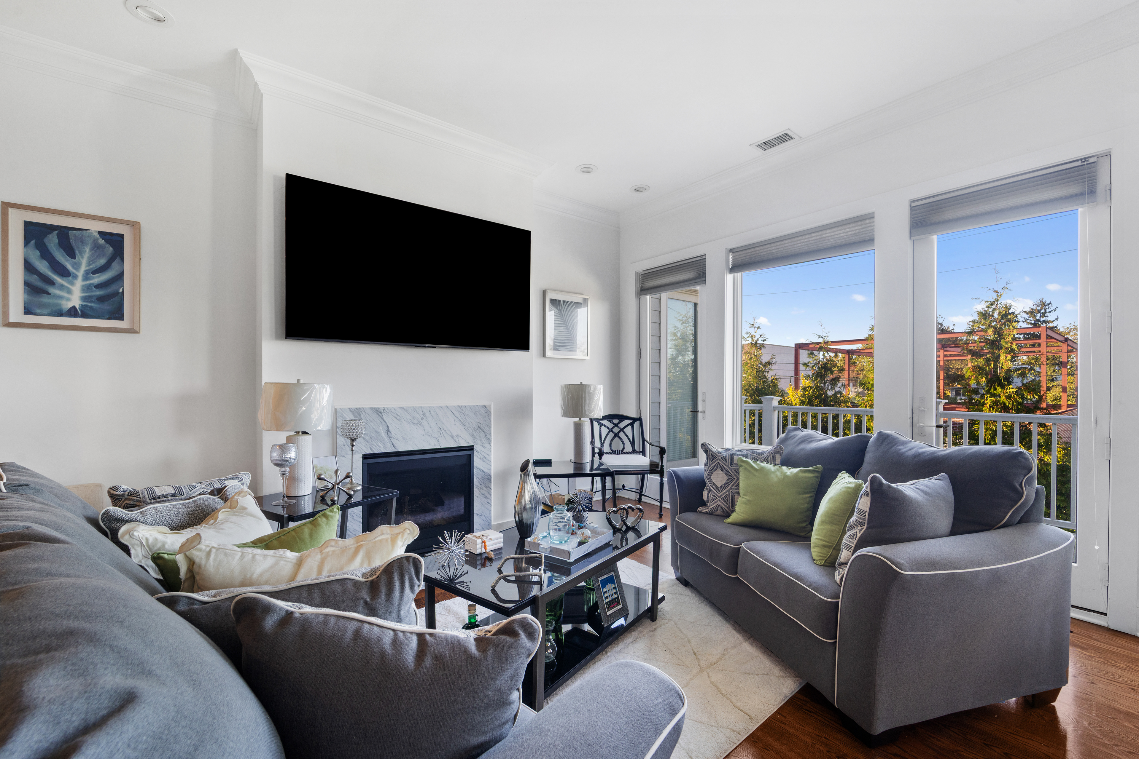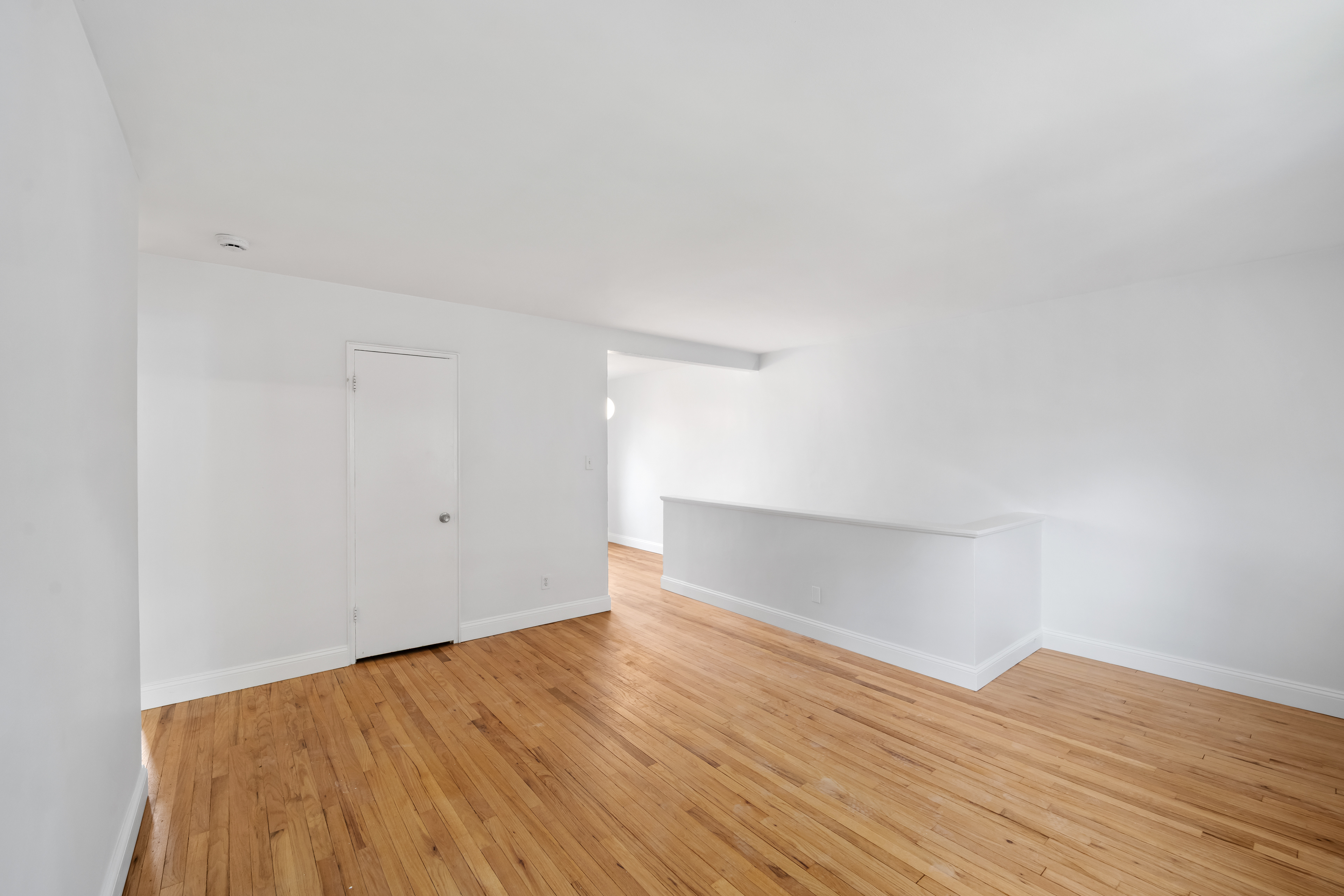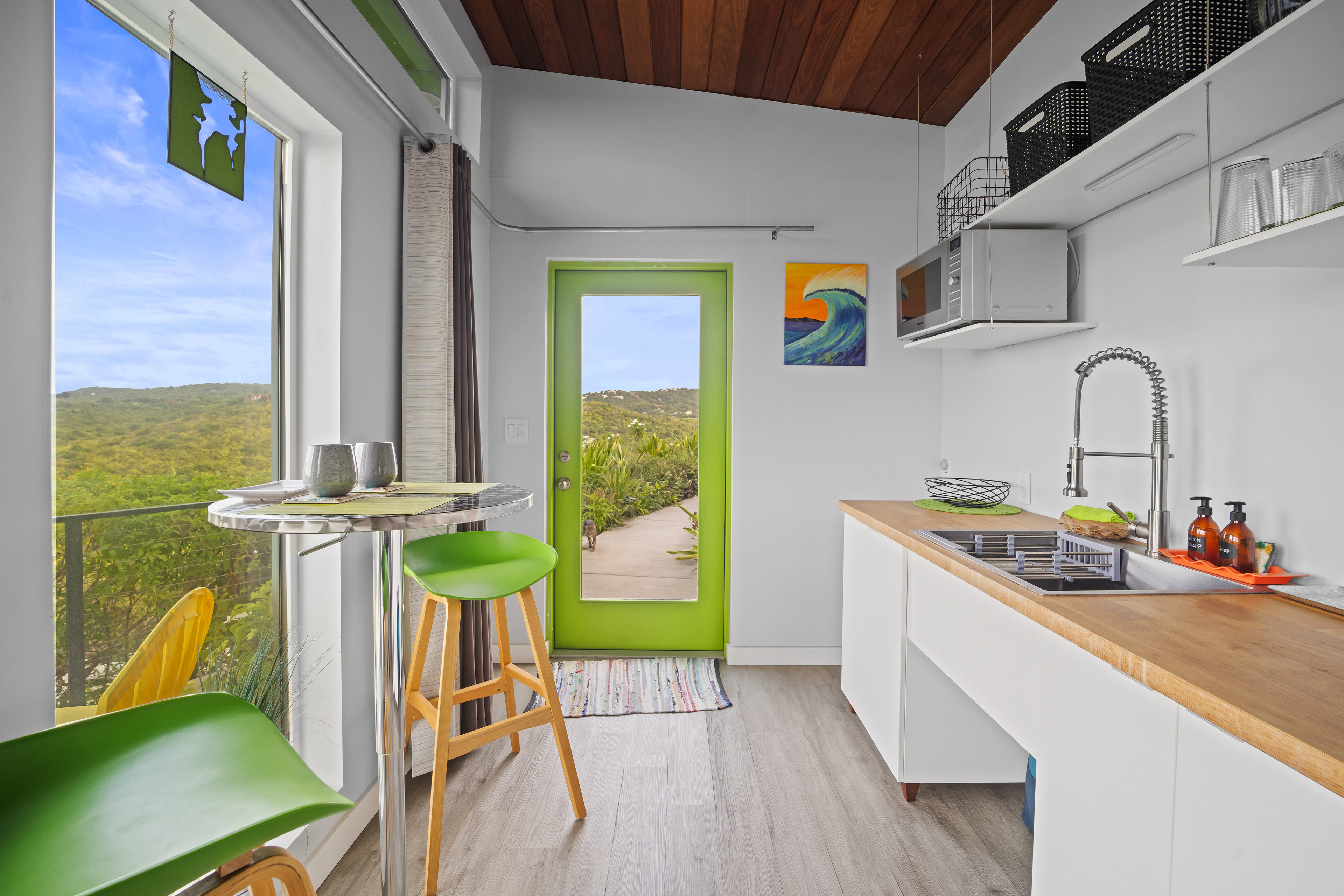 Inside the main living area, featuring a spiral staircase up to the 2nd floor.